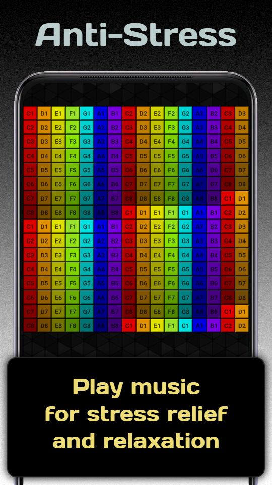 Anti-Stress Music Pad is an application for playing music, designed to enhance your well-being and relieve stress. It offers extensive customization options for sound palettes and effects, allowing you to create unique musical compositions.