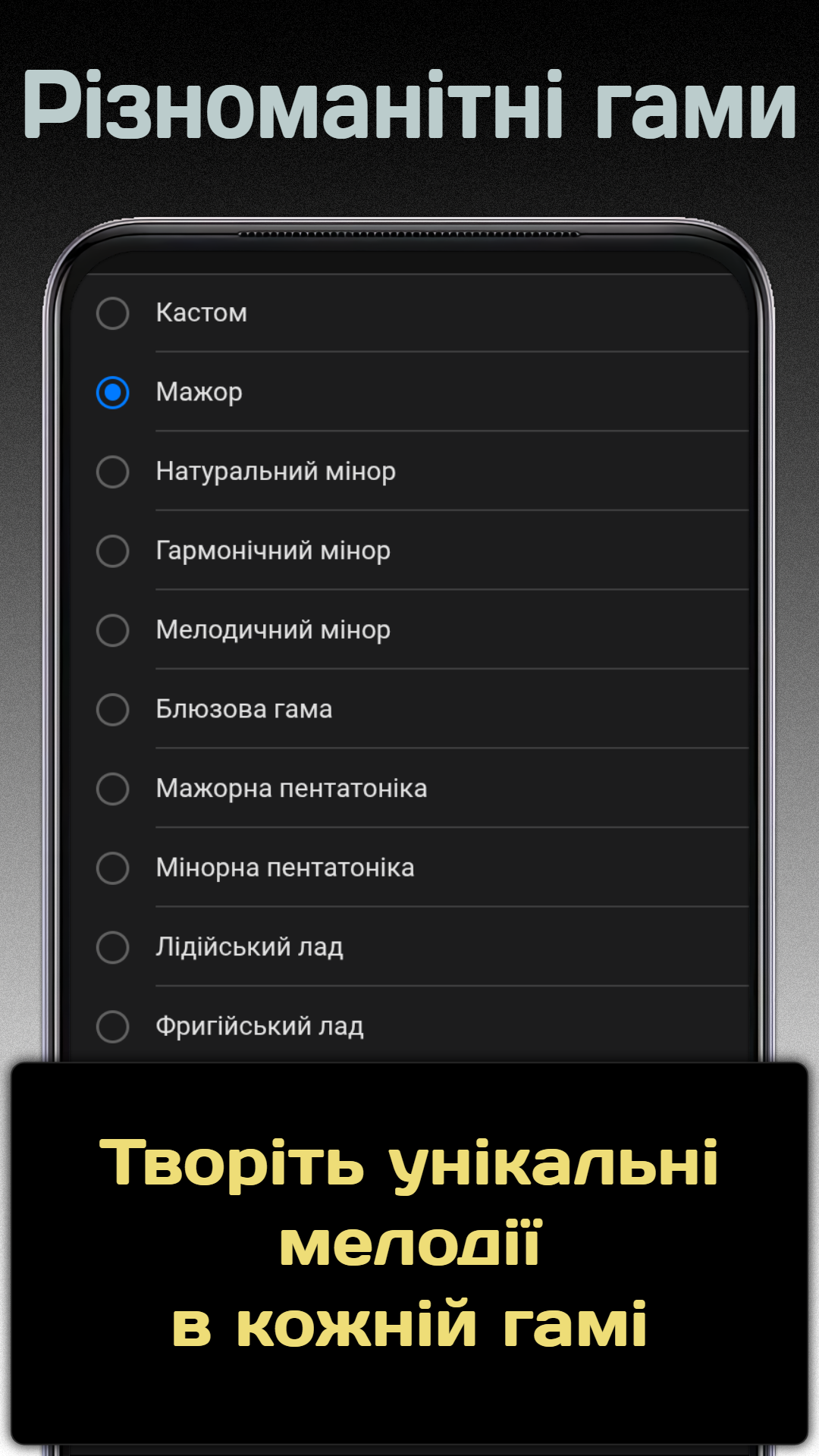 Інтуїтивний інтерфейс робить створення гармонійної музики простим — кожна нота звучить красиво і в межах обраної гами.