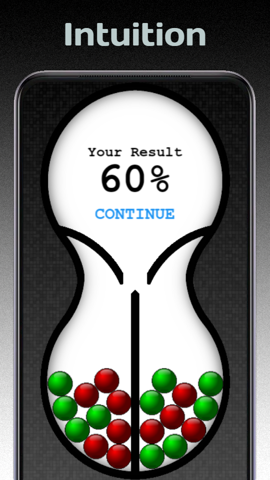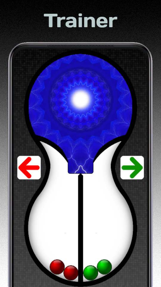 When using this intuition trainer, you should feel which of the two arrows you should click on and select the correct option. When you press the button with the green arrow, the correct option is for the green ball to fall into the right section. And when you press the button with the red arrow, the correct option is for the red ball to fall into the left section.